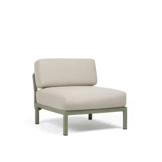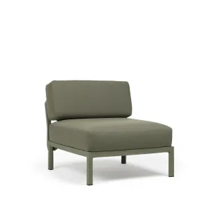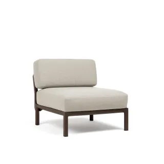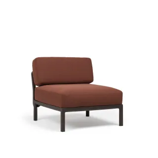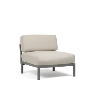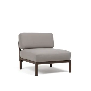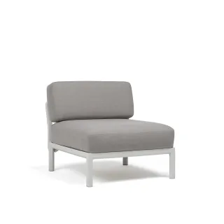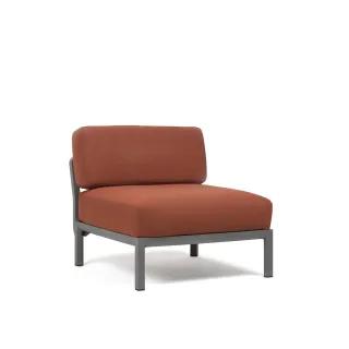 Sessel ohne Armlehnen mit Struktur aus regeneriertem Kunststoff und Geweben mit einem hohen recycelten Anteil. Einzeln erhältlich oder als mittleres Element zum Zusammenstellen des modularen Sofas MAXIMO