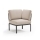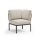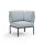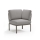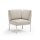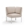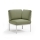 Ecksessel ohne Armlehnen aus glasfaserverstärktem Kunststoff mit gepolsterter Sitzfläche und Rückenlehne. Einzeln erhältlich oder als Eckelement bei der Planung größerer Kompositionen verwendbar, die in der Kollektion der modularen Sitzgelegenheiten Komodo vorgesehen sind.