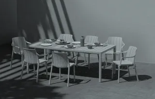 Material: UV-beständigem fiberglass-Polypropylen, voll durchgefärbt. Matt-Effekt. Mit rutschfesten Fußkappen. Recyclebarer Kunststoff.