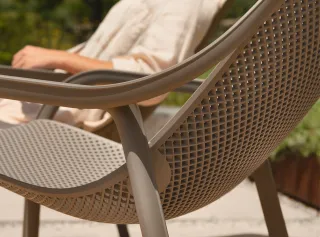 Available in five charming colours, Net Lounge has a fiberglass polypropylene structure with a slightly rounded matt surface, which is pleasant to the touch and embellished with a delicate square perforated pattern.