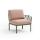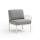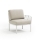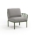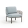 Armchair with one armrest (rh or lh) in fiberglass resin, with padded elements, which can be configured as an initial/final element of a modular seating arrangement from the Komodo collection.