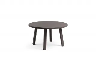 A versatile free-standing low table in regenerated resin with a round top, ideal for meeting all outdoor design project requirements.