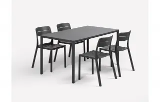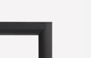 Piave is a table system that combines visual lightness and formal balance with functionality: a very thin textured laminate top, rounded corners and a sturdy aluminium frame with a round cross section.