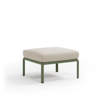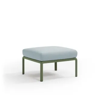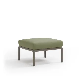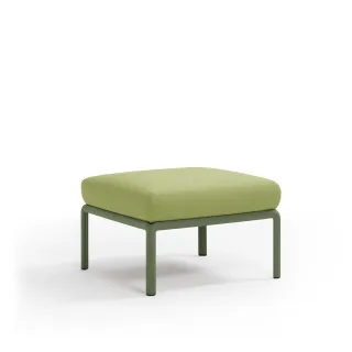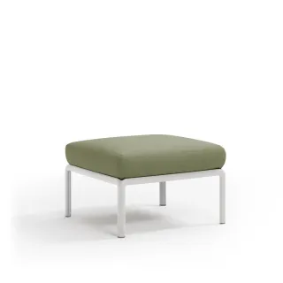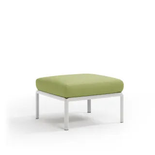 Original puf de resina de fibra de vidrio y acolchado. Se puede comprar individualmente o diseñar como elemento de composición en conjuntos más amplios previstos por la colección de sillas modulares Komodo.