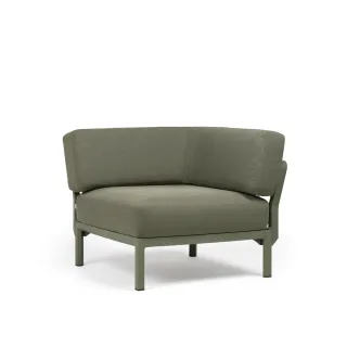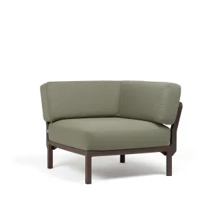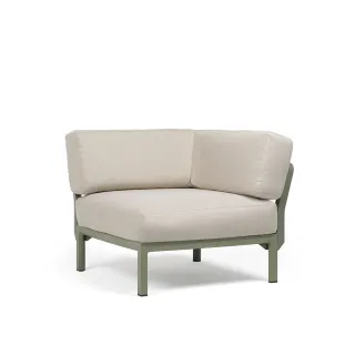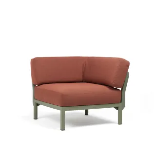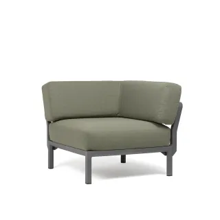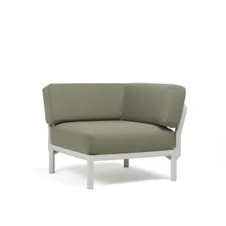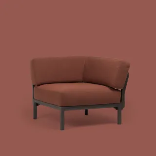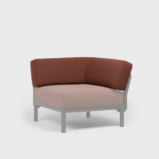 Sillón rinconero sin brazos con estructura de resina regenerada y telas con un alto contenido reciclado. Se puede comprar por separado o ser incorporado como elemento del sofá modular MAXIMO