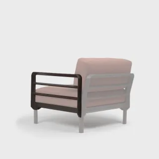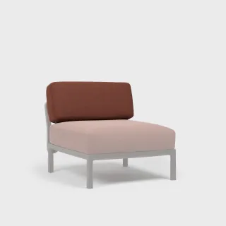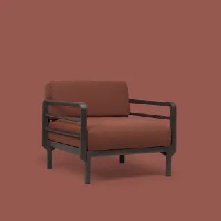 Fauteuil avec accoudoirs doté d’une structure en résine régénérée et de tissus à haute teneur en matières recyclées. Peut être acheté individuellement ou conçu comme un élément de composition du canapé modulaire MAXIMO