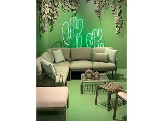 Tutte le collezioni sono ambientate: l’arredo giardino è accolto in spazi delimitati da strutture metalliche colorate che richiamano il profilo di una casa stilizzata, mentre all’interno gli arredi vivono come se fossero collocati in veri giardini in modo che ogni visitatore li possa immaginare nel proprio spazio outdoor.