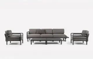 Poltrona con un bracciolo (dx o sx) con struttura in resina rigenerata e tessuti ad alta componente riciclata. Acquistabile singolarmente o progettabile come elemento compositivo centrale del divano modulare MAXIMO