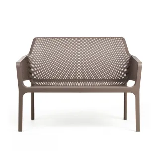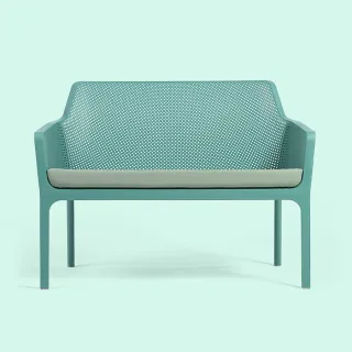 Romantica ed empatica, Net Bench è una panchina per esterni a due posti in resina fiberglass. Caratterizzata da un motivo a fori quadrati e raggiati, presenta linee pulite, profili sottili senza soluzione di continuità e un’ampia gamma di cuscini a corredo.