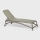 Lettino prendisole con braccioli caratterizzato da struttura tubolare in resina e interno in tessuto sintetico traspirante. Schienale regolabile su quattro posizioni e disponibile in diverse combinazioni di colore tra struttura e tessuto. Impilabile.