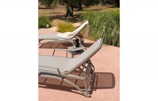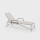 Lettino prendisole. Materiale: struttura tubolare in polipropilene fiberglass trattato anti-uv e colorato in massa. Interno in tessuto sintetico traspirante e ricambiabile. Resina riciclabile.