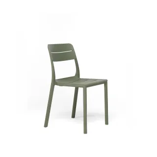 Nelle versioni colore Basalto e Cactus la sedia è in polipropilene fiberglass RIGENERATO.