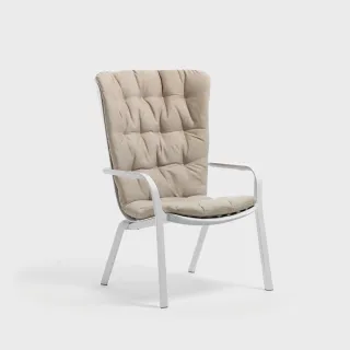 La poltrona, ideale per uso esterno, presenta un avvolgente schienale collegato senza soluzione di continuità alla generosa seduta ribassata: un unico e raffinato abbraccio strutturale reclinabile in due posizioni comfort. La base è costituita da due barre in polipropilene progettate curve e applicabili alla seduta al posto dei piedini per ottenere l’ammaliante oscillazione delle poltrone a dondolo.