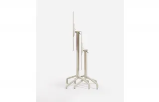 Base per tavolo alto pieghevole. Materiale: alluminio verniciato. Impilabile orizzontalmente. Dotata di piedini regolabili. Adatta per piani misure Ø 60 - Ø70 - 60 x 60 - 70 x 70 cm.