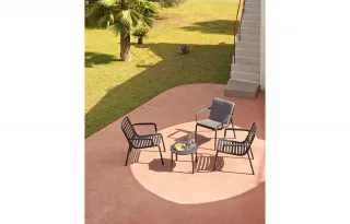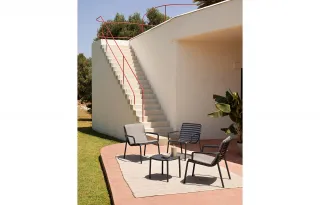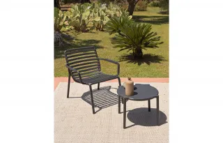Tavolo basso. Materiale: polipropilene fiberglass trattato anti-UV e colorato in massa. Finitura opaca. Dotato di piedini antiscivolo. Resina riciclabile.